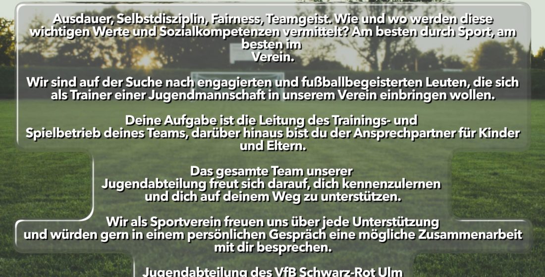 Du hast noch keine Erfahrung als Trainer und bist dir nicht sicher ob du dir die Aufgabe zutraust? Kein Problem. Starte als Co-Trainer in einem unserer Trainerteams. Als Breitensportverein wollen wir möglichst viele Kinder für Sport begeistern. Leider stoßen wir […]